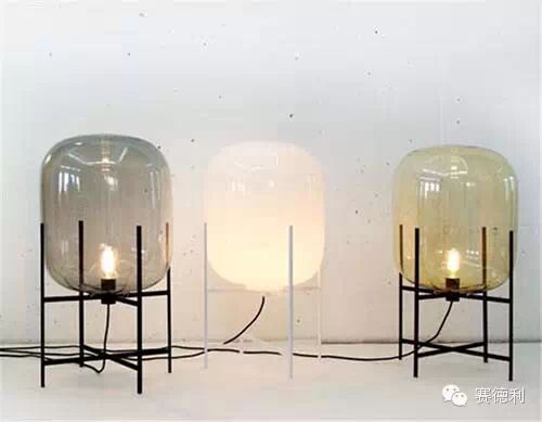 玻璃灯罩的颜色有三:琥珀、灰和蛋白石。琥珀古典,灰色经典,蛋白石色的口吹灯罩则迷蒙飘渺。每款的平衡架可如高跷般细长,又或如细短的麻雀脚。不过在结构简化之后,制作出来的灯具Oda 还真有工业化的美感呢。
