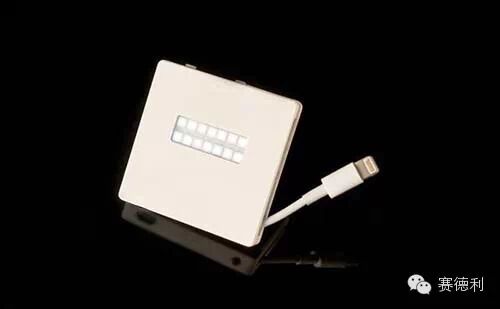 PowerLite是一款非常小巧的装置,它拥有14枚LED灯,可提供630流明的亮度(相当于40W灯泡)。用户可以对这些LED灯的亮度进行调节,以获得自己需要的拍摄亮度。除了闪光灯的功能外,PowerLite还内置了一枚1600mAh的电池,虽然容量并不大,但足以在手机没电时用来救急。